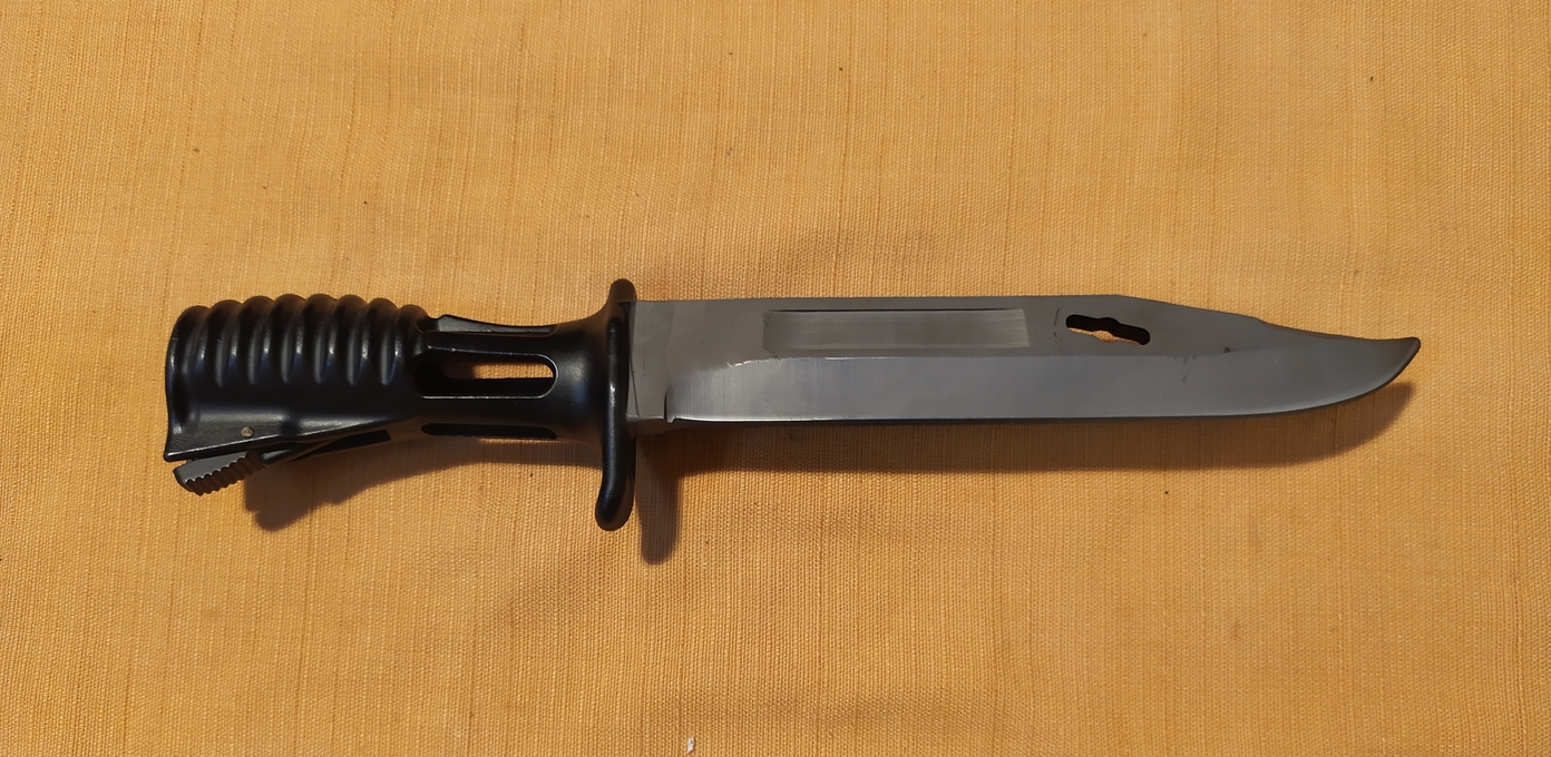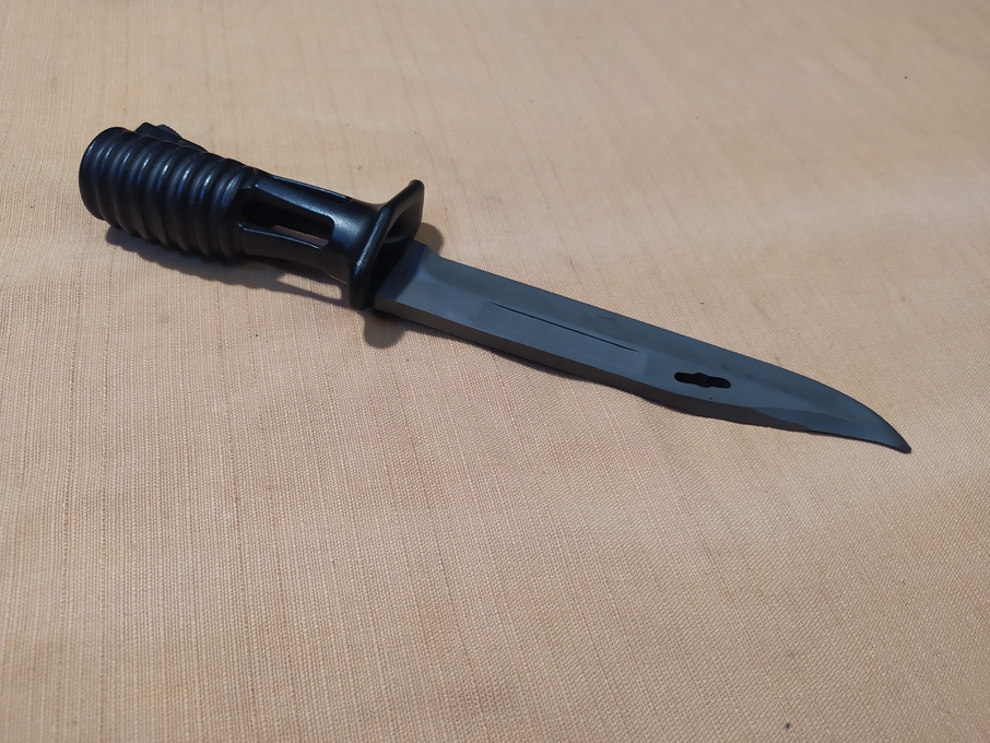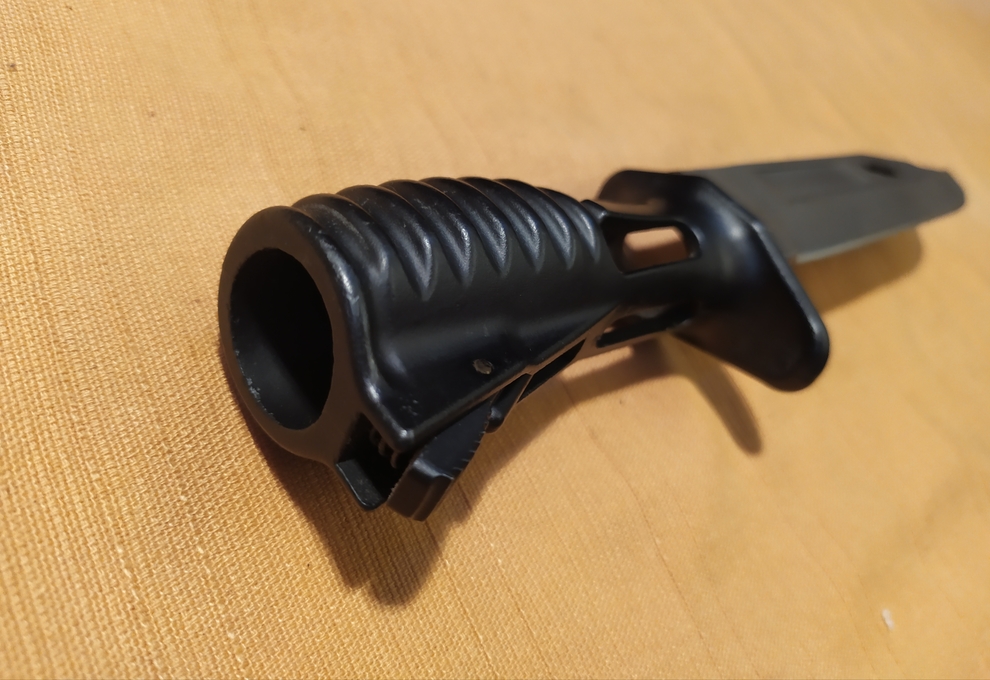 Bajonet pro britskou útočnou pušku SA80, dutá kovová rukojeť s ochranou, použitelné s pouzdrem jako drátová řezačka