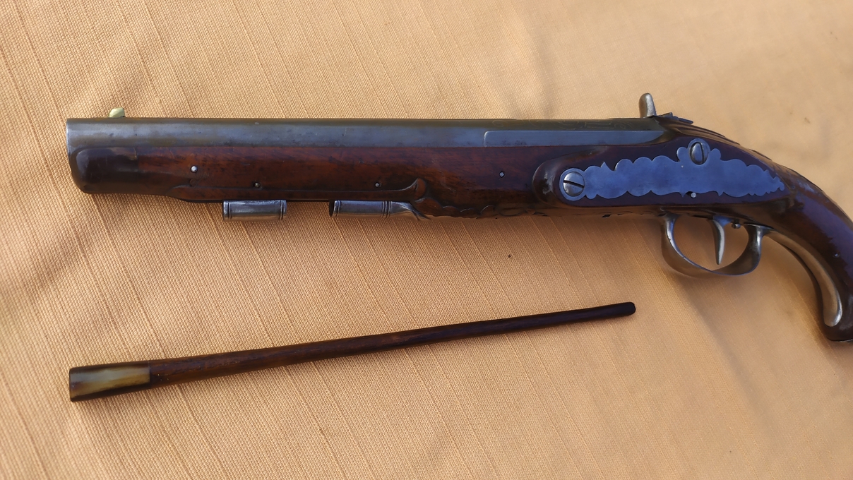 Celopažbená zperkusená pistole s francouzským napínáčkem.