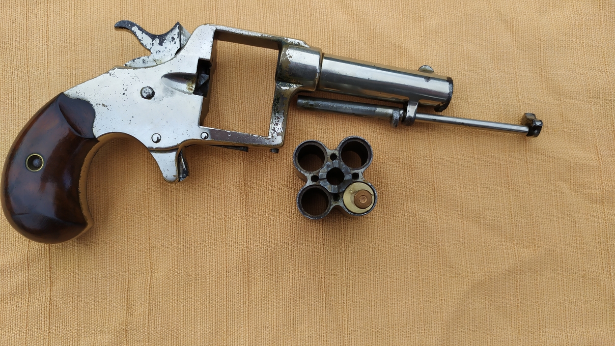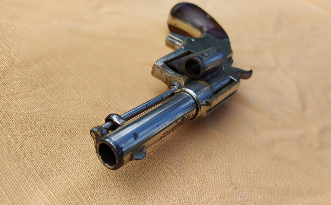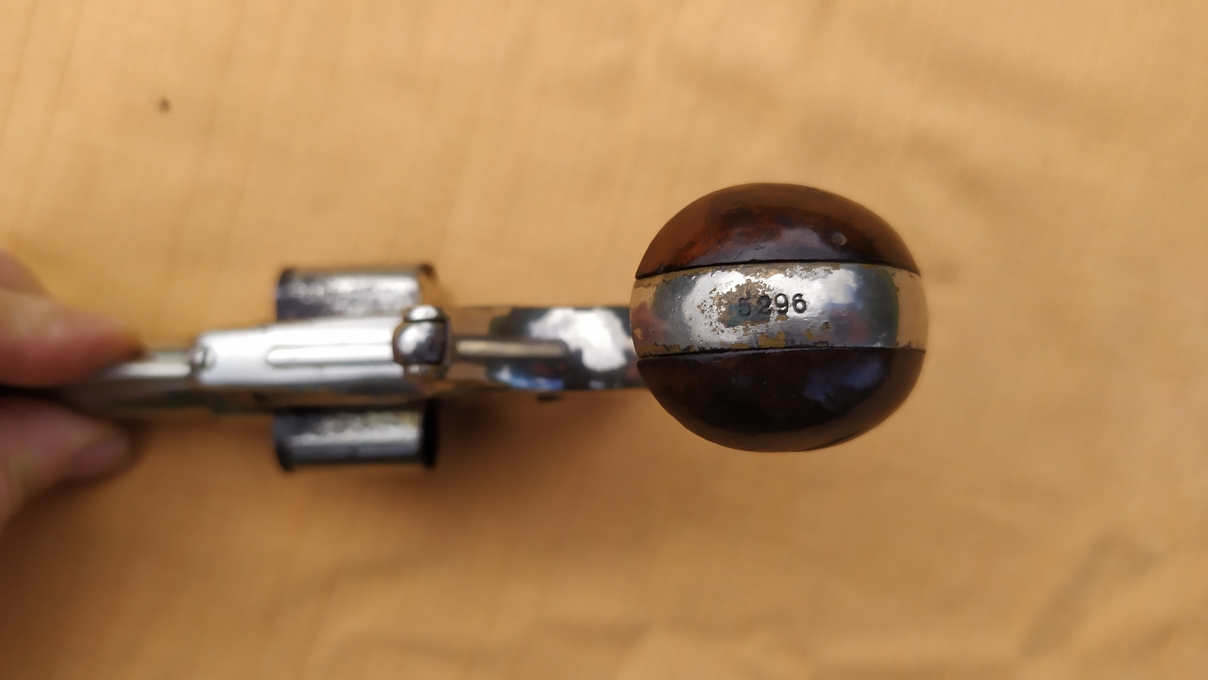 Délka 17cm, délka drážkované hlavně ve variantě 3“, drážky výrazné, bez koroze, válec na 4 náboje ráže .41RF.